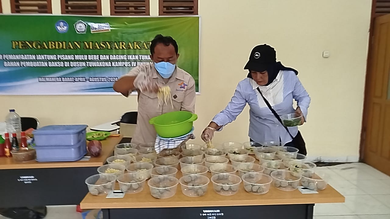 Pelatihan pemanfaatan jantung pisang mulu bebe dan daging ikan tuna sebagai bahan pembuatan bakso yang digelar Agustus lalu itu, menghadirkan dua narasumber. Yaitu, Nurjana Albaar, STP., MP dan Dr. Hamidin Rasulu, STP., MP.