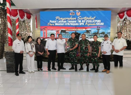 Komitmen Selesaikan Persoalan Aset TNI, Menteri Nusron Serahkan Sertipikat Tanah untuk Puslatpur TNI AD Terluas se-Asia