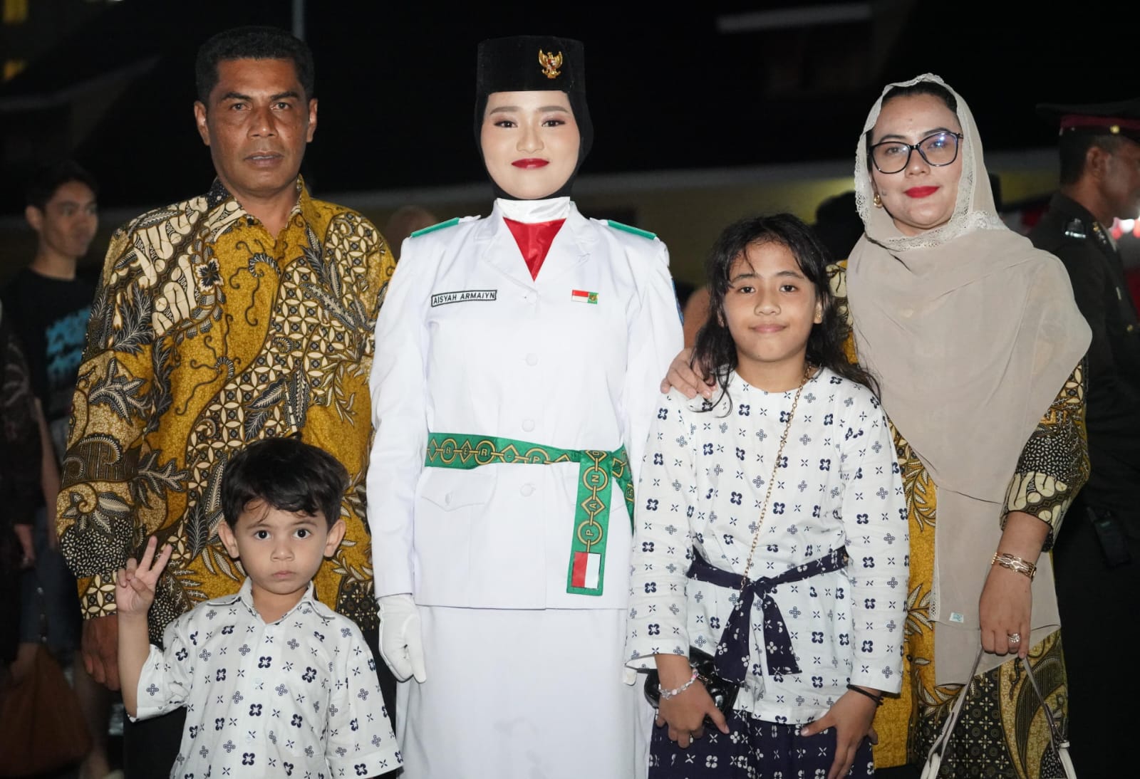 Aisyah Armaiyn bersama keluarga di malam pengukuhan Paskibraka Kota Ternate. (foto: Edo Huka)
