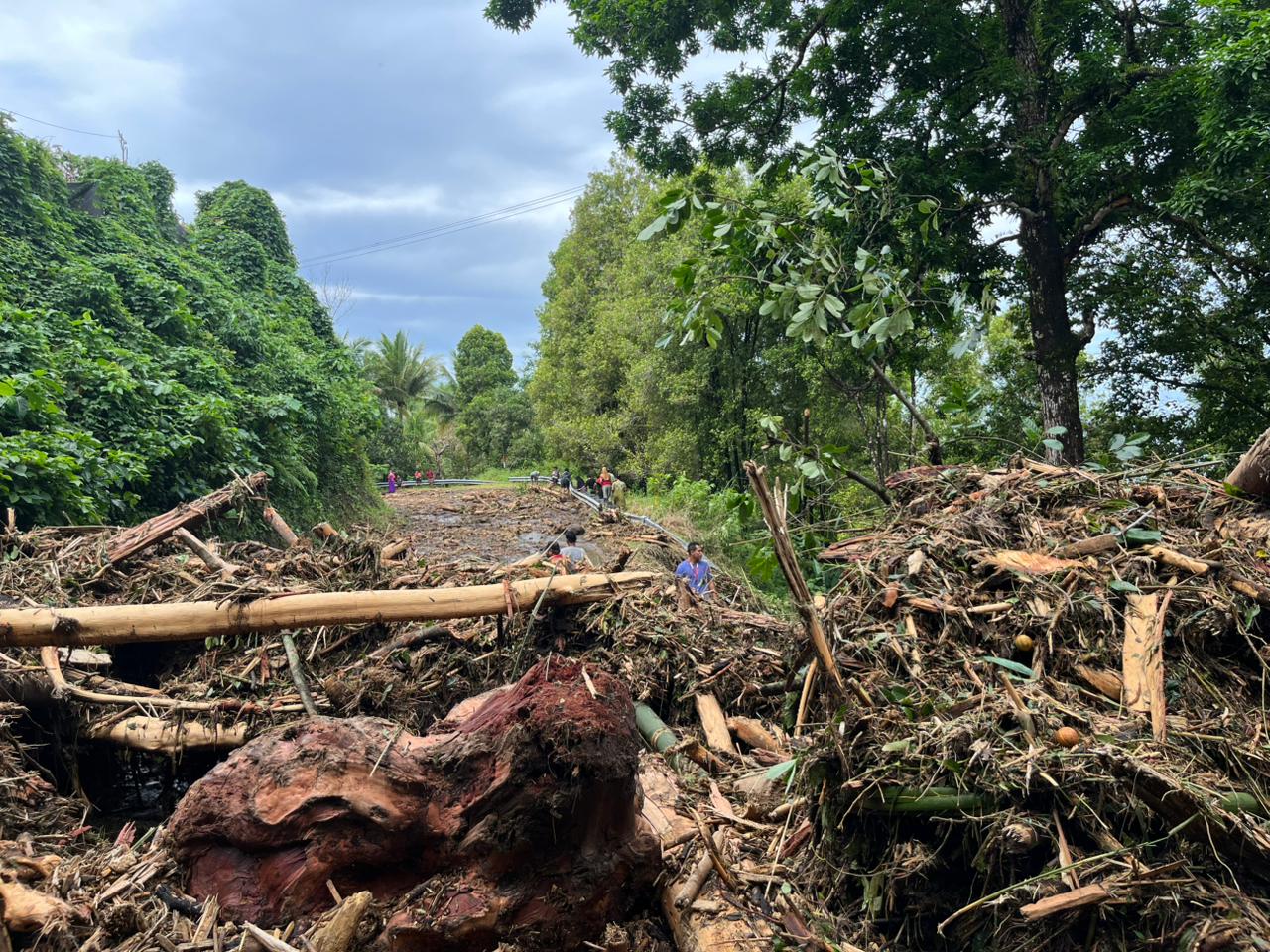 Di lokasi pagi ini, warga bersama aparat setempat gotong royong membersihkan material. Namun material yang berukuran besar dan medan longsor yang cukup berbahaya membuat pekerjaan terhambat.