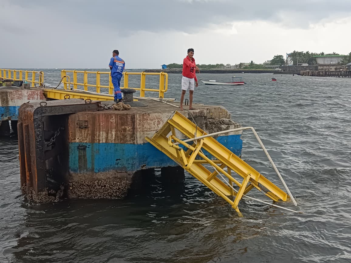 Selain itu, di pagi tadi, satu kapal Feri yang hendak keluar dari dermaga untuk berlabuh menyebabkan railing dermaga patah karena benturan. Hal itu disebabkan karena gelombang yang cukup kuat.
