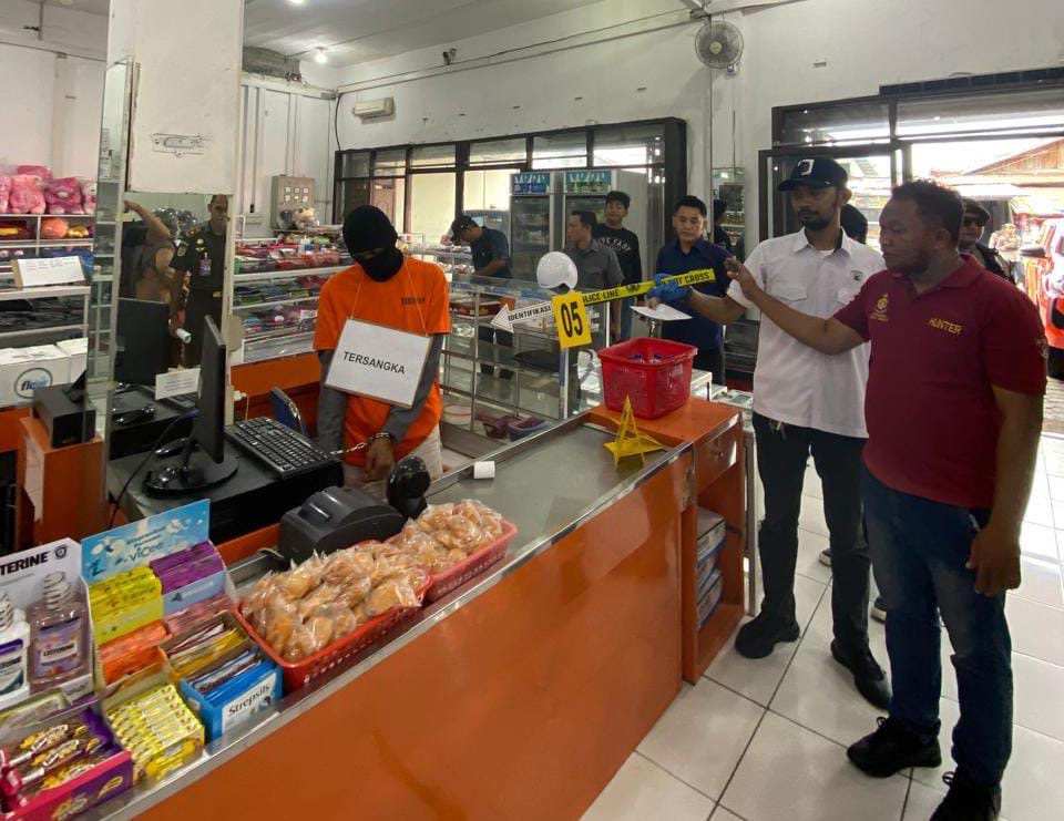 Dalam rekonstruksi ini, dipimpin langsung oleh KBO Reskrim Polres Ternate, IPDA Soedharmono, yang berlokasi di 3 toko yang berbeda-beda berdasarkan aksi pencurian dan penikaman yang dilakukan tersangka Rifal.