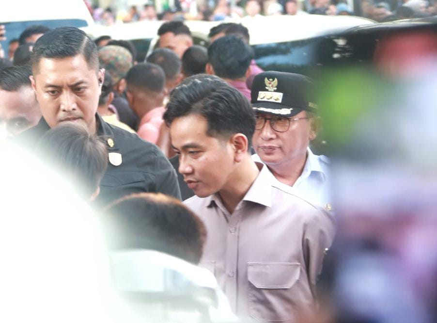 Di pasar, Gibran menyempatkan diri untuk melihat aktivitas para pedagang dan kondisi pasar. Ribuan warga memadati kawasan pasar demi menyambut dan melihat langsung sosok Wapres yang juga putra sulung Presiden Joko Widodo itu.