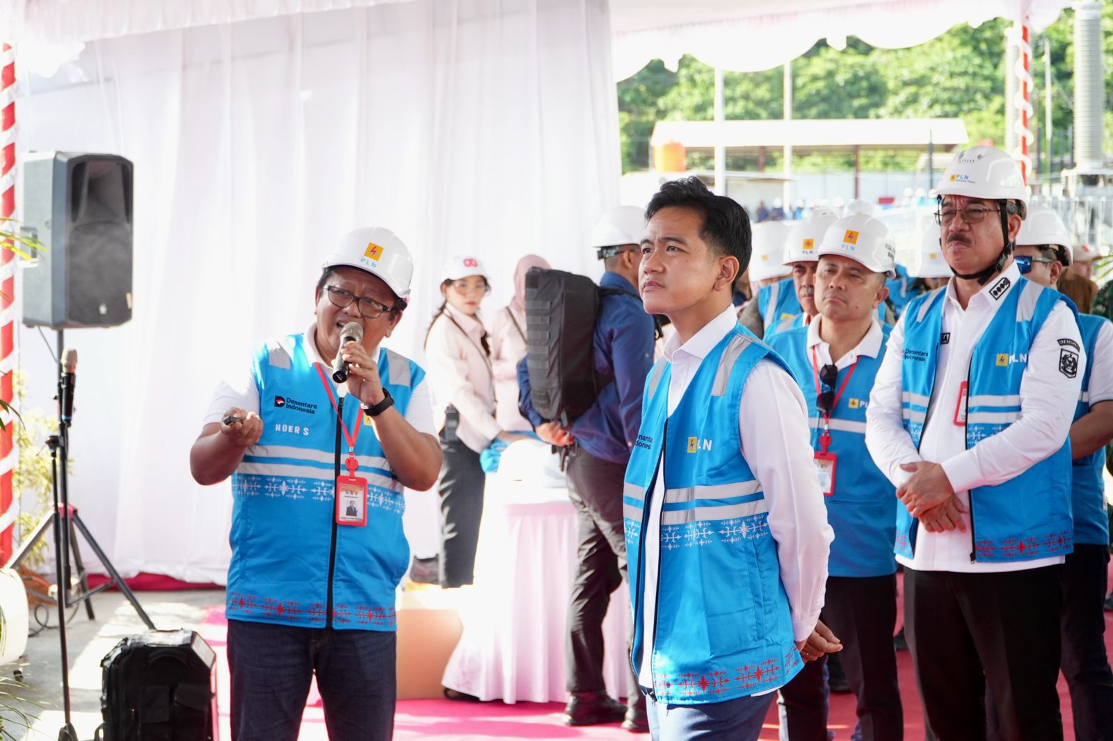 Wapres Gibran mendapatkan penjelasan dari General Manager PLN Unit Induk Wilayah Maluku dan Maluku Utara (UIW MMU), Noer Seoratmoko.