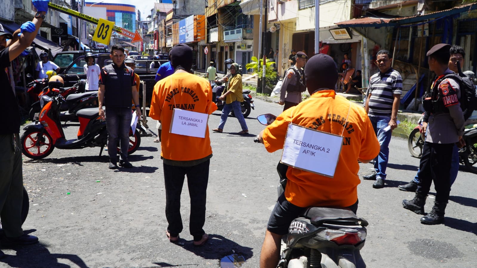 Rekonstruksi dengan 3 pelaku yakni, Faisal (37 tahun) warga Kelurahan Bubu, Kecamatan Kambowa, Arik Anggarat (34 tahun) warga Mokoau, Kecamatan Kambu, Kabupaten Kendari dan La Jamal (42 tahun) warga Kelurahan Sukur, Kecamatan Airmadidi, Kabupaten Minahasa. Rekonstruksi dipimipin langsung oleh KBO Reskrim, IPDA Soedharmono, yang berlangsung di tempat kejadian perkara (TKP) di Kelurahan Gamalama, Kecamatan Ternate Tengah.