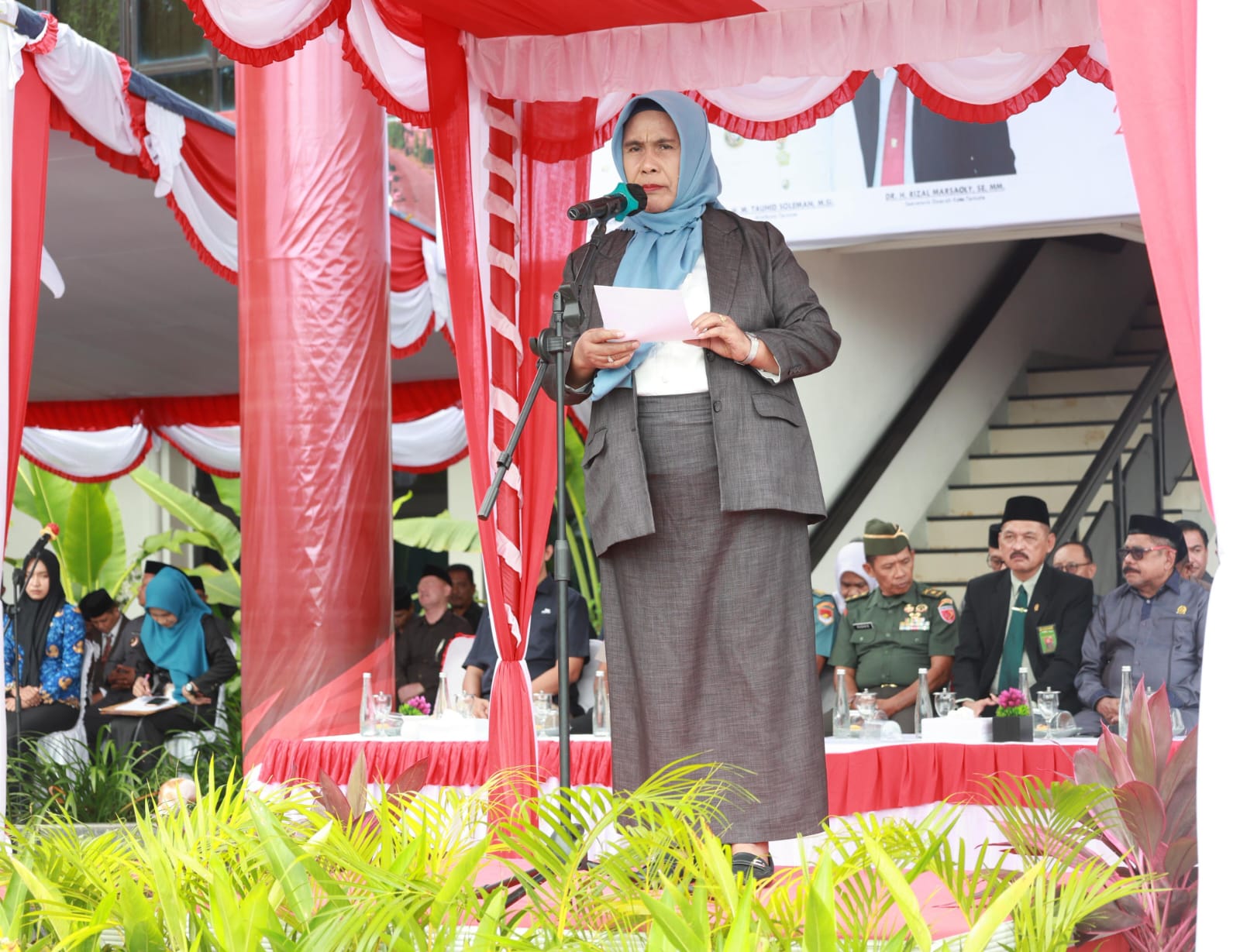"Hari ini tugas kita berbeda. Kita tidak lagi mengangkat bambu runcing, tetapi mengangkat ilmu, kerja keras, dan kejujuran. Namun semangatnya tetap sama: Indonesia harus berdiri tegak. Indonesia tidak boleh kalah," kata Rukmini.