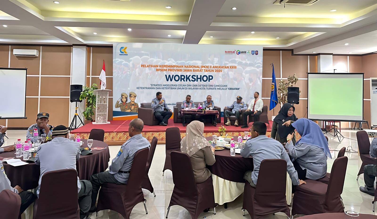 Ternate, malutpost.com - Kepala Satuan Polisi Pamong Praja (Kasatpol PP) Kota Ternate, Fhandy Mahmud S.STP.,M.Adm.SDA menggelar workshop untuk memperkenalkan proper-nya yang berjudul Strategi Akselerasi Cegah Dini dan Deteksi Dini Gangguan Ketenteraman dan Ketertiban Umum (CEKATAN).