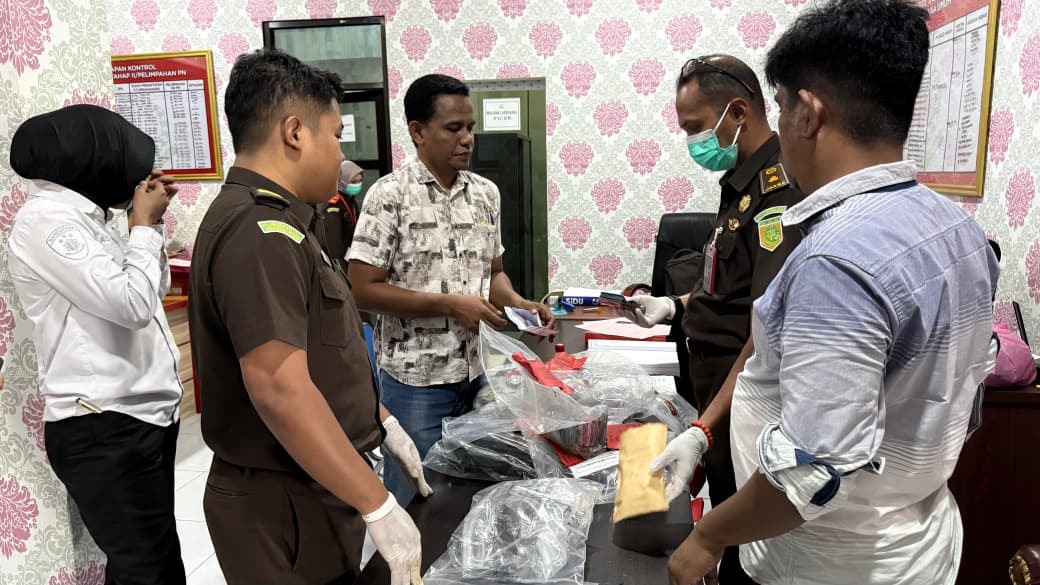 Kasi Intel Kejari Ternate,Aan Syaeful Anwar mengatakan, setelah berkas diterima dari penyidik, JPU Kejari Ternate melakukan penelitian terhadap sejumlah barang bukti. “Diantaranya sejumlah uang tunai pecahan Rp50 ribu dan Rp100 ribu yang masih ada bercak darah korban, pisau yang digunakan untuk menikam korban, parang yang digunakan untuk mencongkel pintu, sepeda motor yang digunakan tersangka serta barang bukti lainnya," akunya.