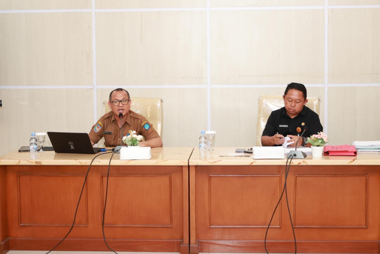 Kepala Inspektorat Kota Ternate, M. Ali Gani Arif dan Sekda Rizal Marsaoly saat memimpin rapat bersama OPD di Lantai III Kantor Wali Kota, Senin (1/12/2025).