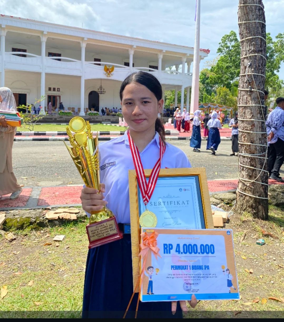 SALAH satu prestasi yang diraihnya adalah meraih juara pertama pada Olimpiade Siswa Nasional (OSN) bidang Studi IPA yang dilaksanakan Dinas Pendidikan Kepulauan Sula (Kepsul) pada November 2025 lalu.