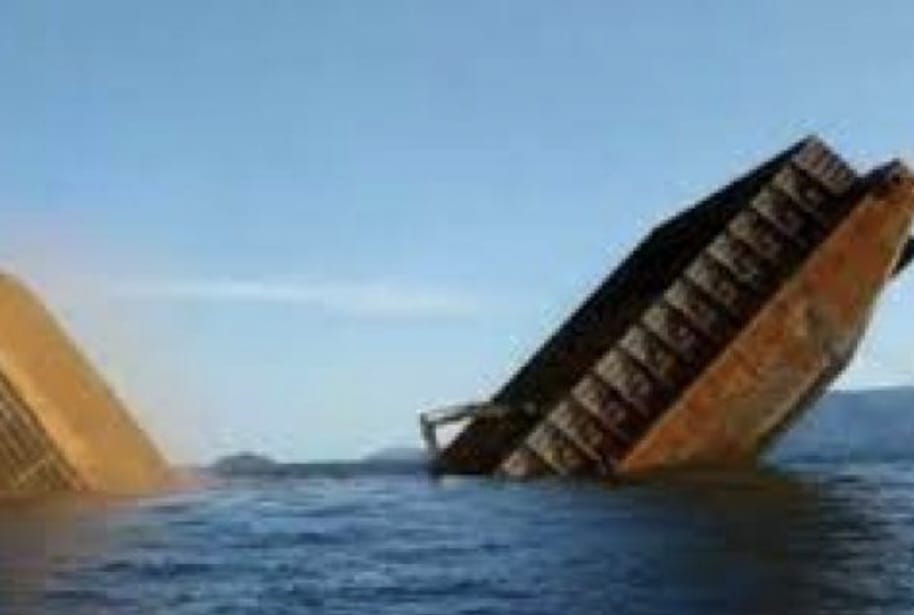 Dalam perjalanan, tepatnya di perairan Obi, terjadi cuaca buruk dan gelombang besar yang menghantam tongkang sehingga bagian lambung tongkang retak dan bocor, sehingga tongkang mulai kemasukan air dan miring.