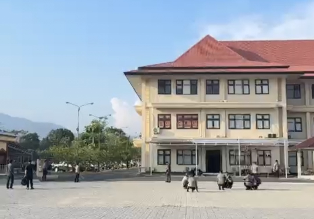 Dalam sebuah video yang beredar, anggota polisi yang ada di dalam gedung diarahkan keluar saat gempa terjadi.