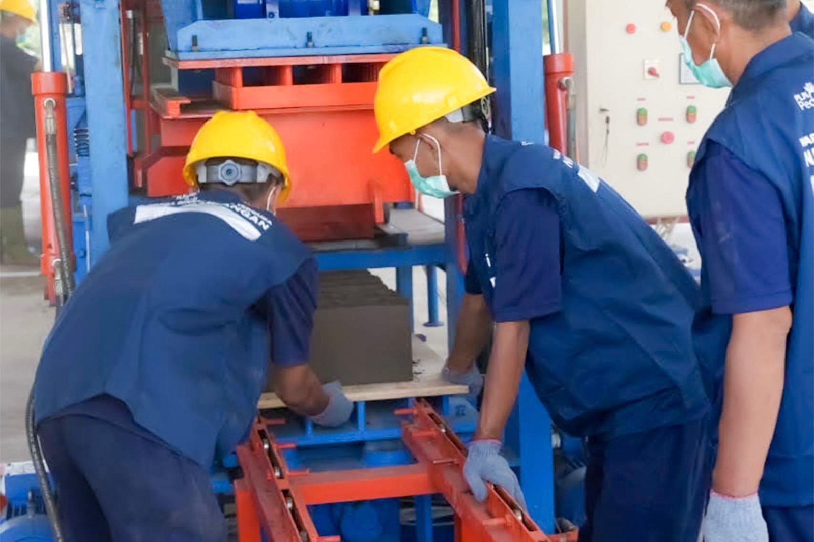 Melalui workshop FABA yang memanfaatkan lahan tidur di Pulau Nusakambangan, warga binaan dibekali keterampilan mengolah limbah menjadi produk seperti batako, paving block, roaster, hingga buis beton.